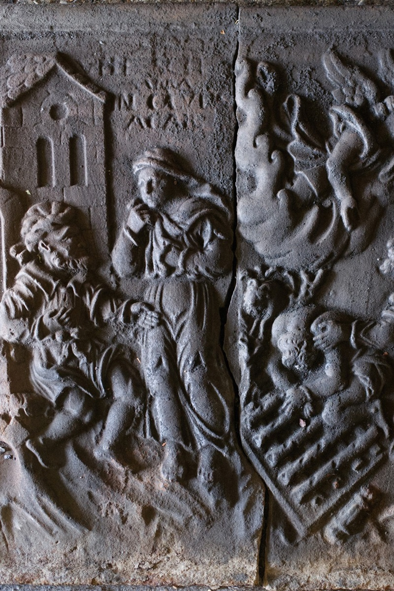 La sidérurgie des hauts-fourneaux produisant de la fonte a fonctionné dans nos régions depuis la fin du XVe siècle. Elle a produit entre autres des taques de cheminée et des plaques de poêles. Une taque en fonte sert de contrecœur pour un âtre. Anciennement, elle permettait de chauffer deux pièces contiguës au départ d’un seul foyer. Le décor de ces taques recouvre plusieurs domaines tels que la bible, la mythologie, les allégories, la vie quotidienne, l’histoire et l’héraldique identitaire.